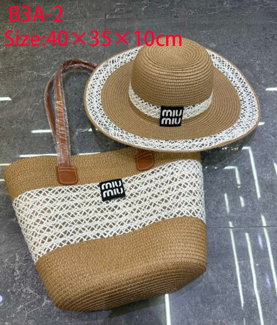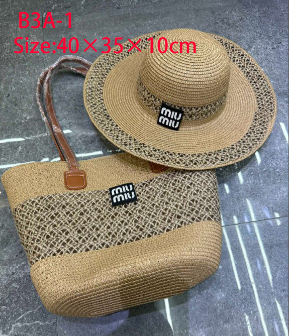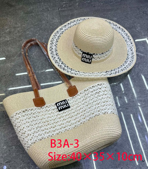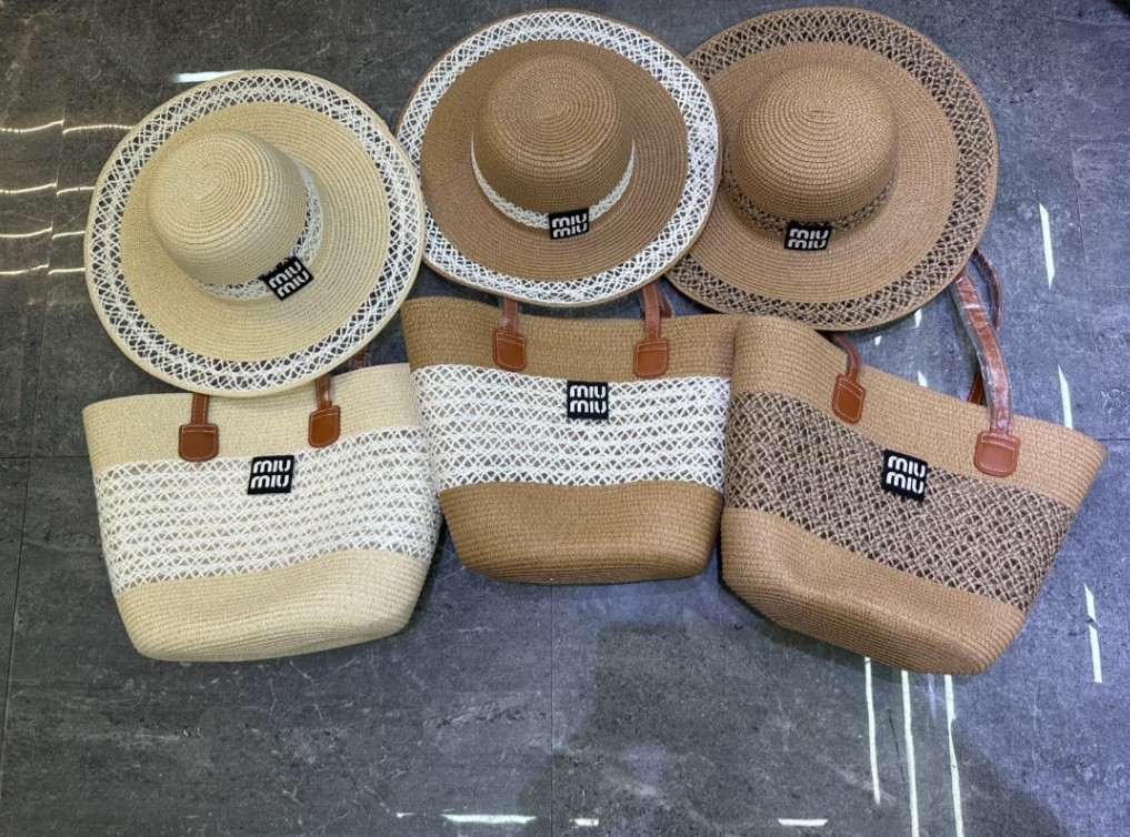 ראשי » מוצרים » תיקי נשים - מותג » סט כובע + תיק קש מיו מיו