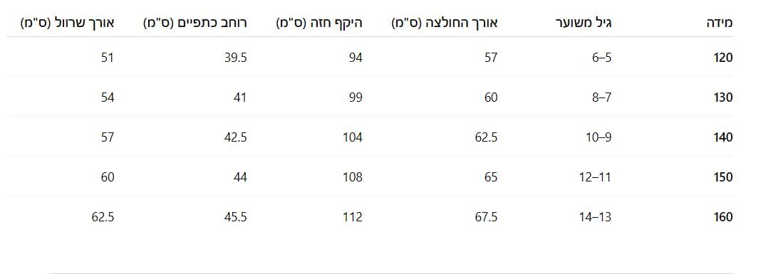 מידות 4-13 שנים