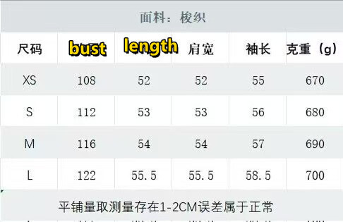 מידות XS-L