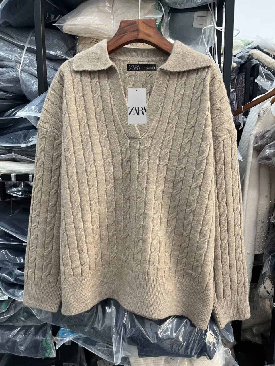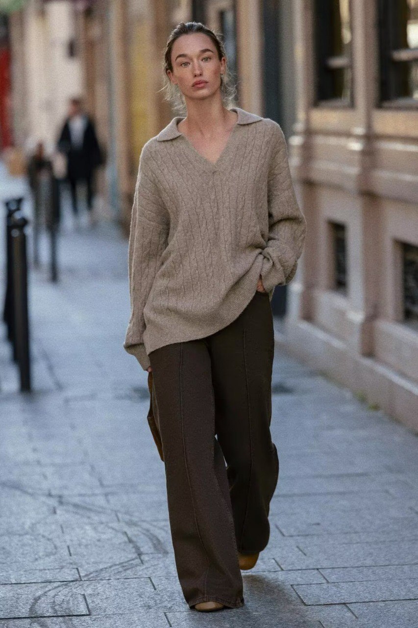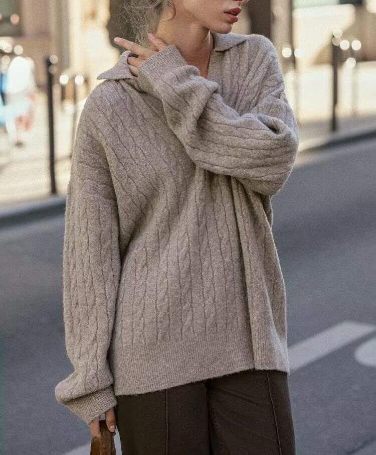 סוודר סרוג עם צווארון
